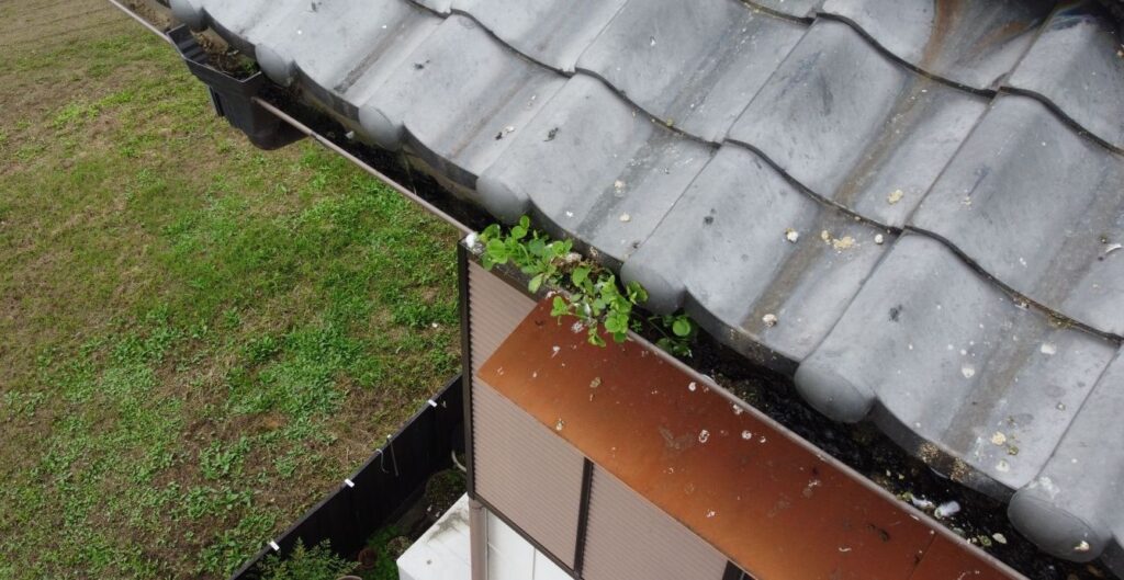 雨樋に落ち葉やゴミが詰まっていないかを確認します。